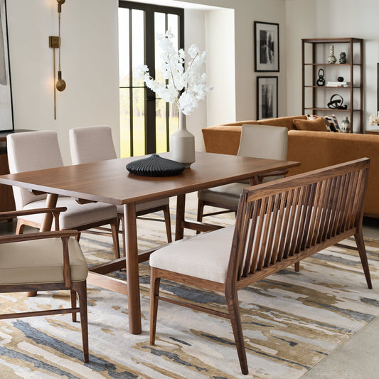 What you see in Walnut Grove is not just beautiful black walnut, but also plenty of air and light. Its curvy, sculptural mid-century modern designs incorporate lots of open space, creating pieces and whole rooms that feel buoyant and fresh.