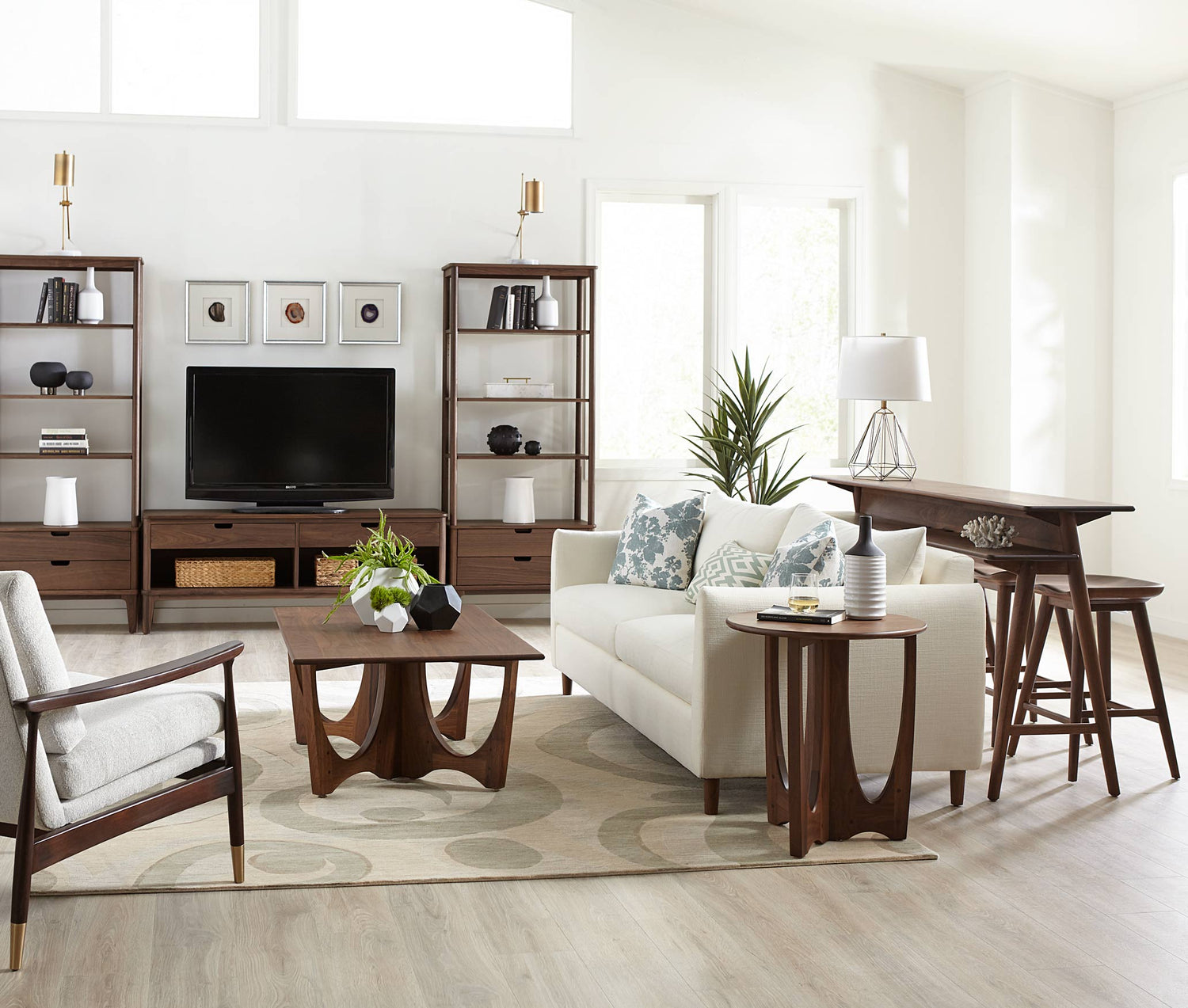 Several pieces from Walnut Grove, including the Gathering Island, Counter Stools, Bookcase, and Entertainment Console, won the 2021 Pinnacle Award in the Entertainment category, given by the International Society of Furniture Designers.