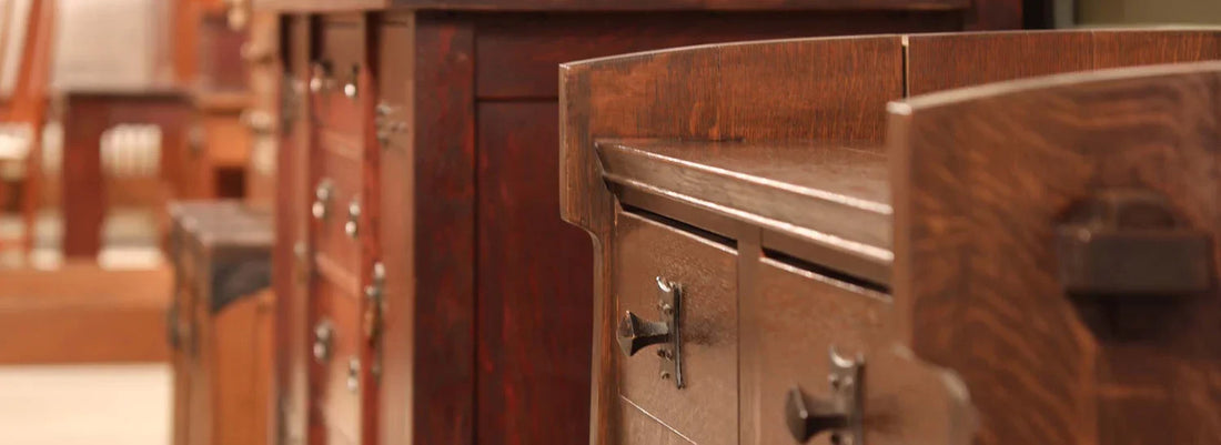 You’ll see examples of Stickley’s signature construction techniques, classic pieces