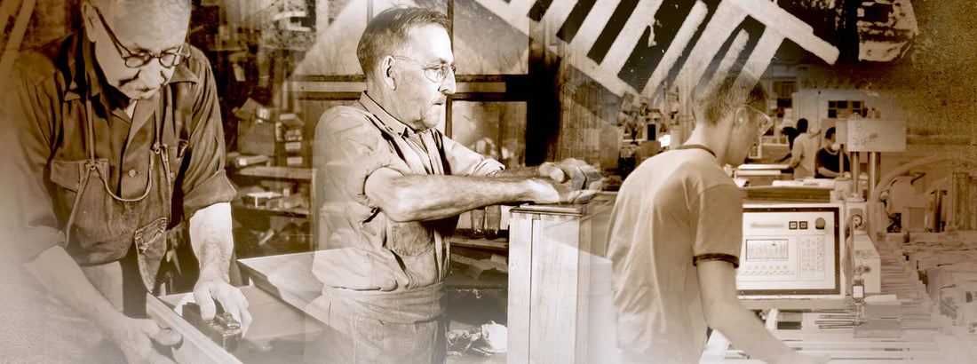 As Gustav Stickley reminded us in The Craftsman, the demands of production often require the aid of machinery, and we take full advantage of both vintage and modern tools and technology. At the point where raw lumber enters the factory, a Rip First machine uses x-rays and optical scans to detect internal and external defects and trim them away.