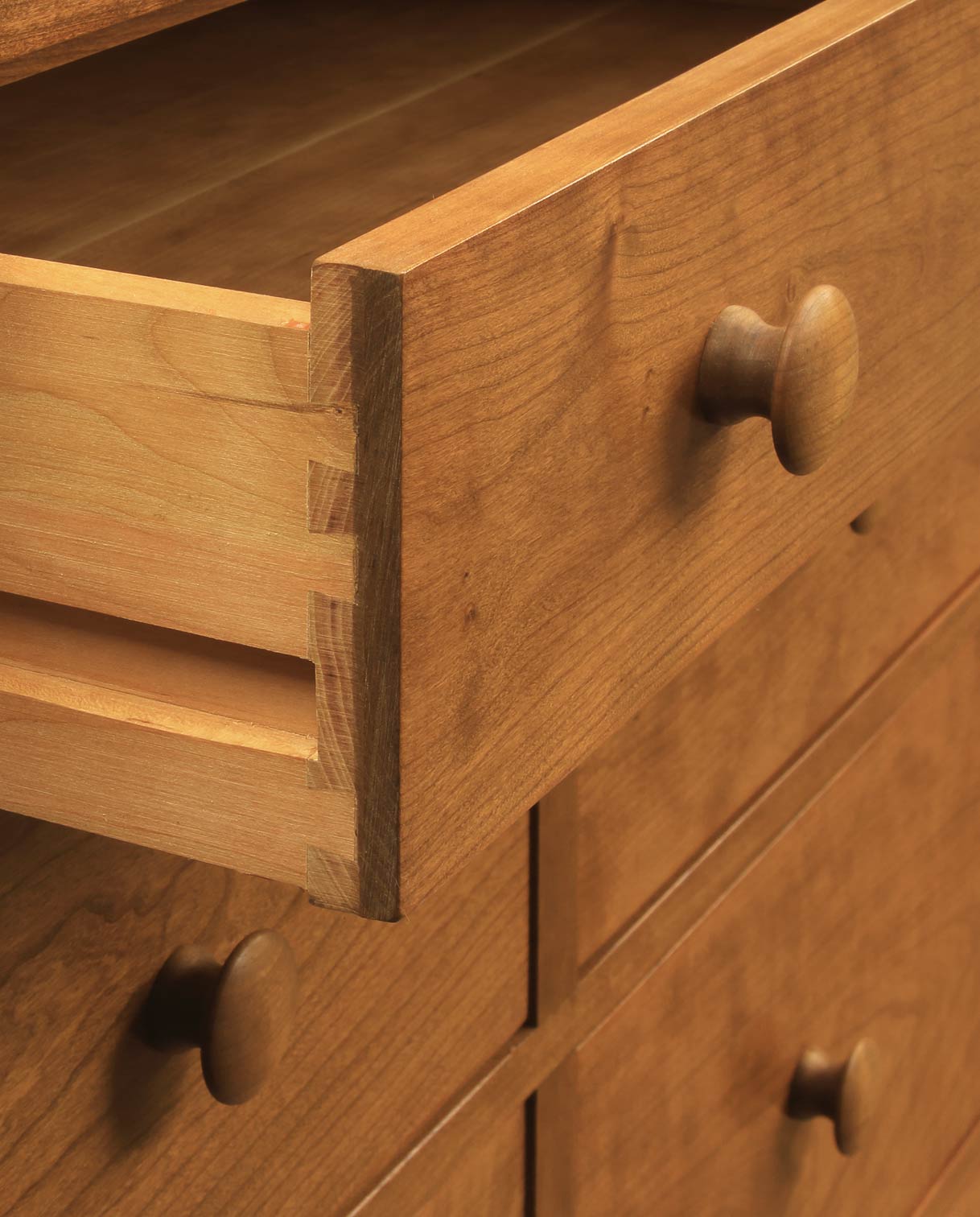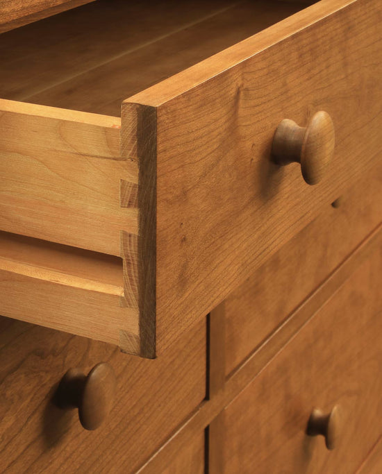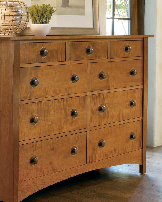 Harvey Ellis dressers offer three wood and hardware options. Cherry drawer fronts feature matching cherry knobs.