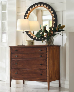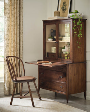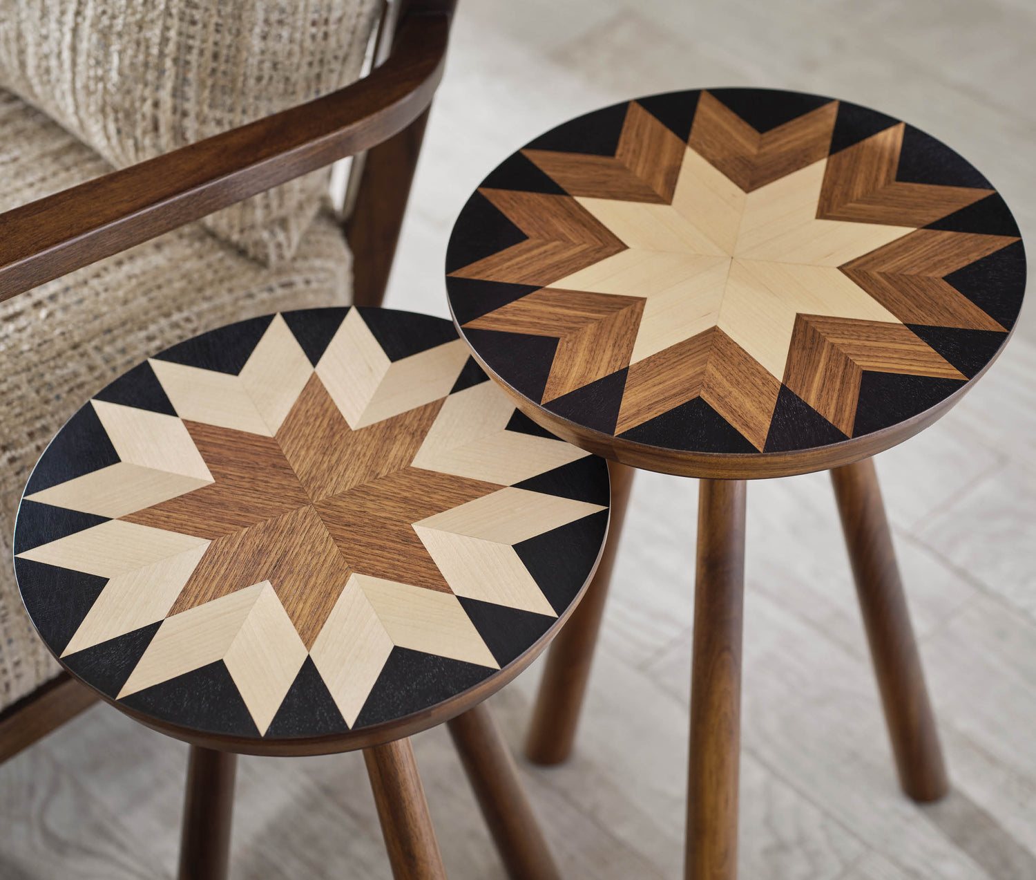 Hudson Valley’s details honor centuries of makers. Striking marquetry is based on American quilt patterns, while spindles, cap rails, and drawer faces with origins in Americana and Shaker craft are given a subtle contemporary spin.