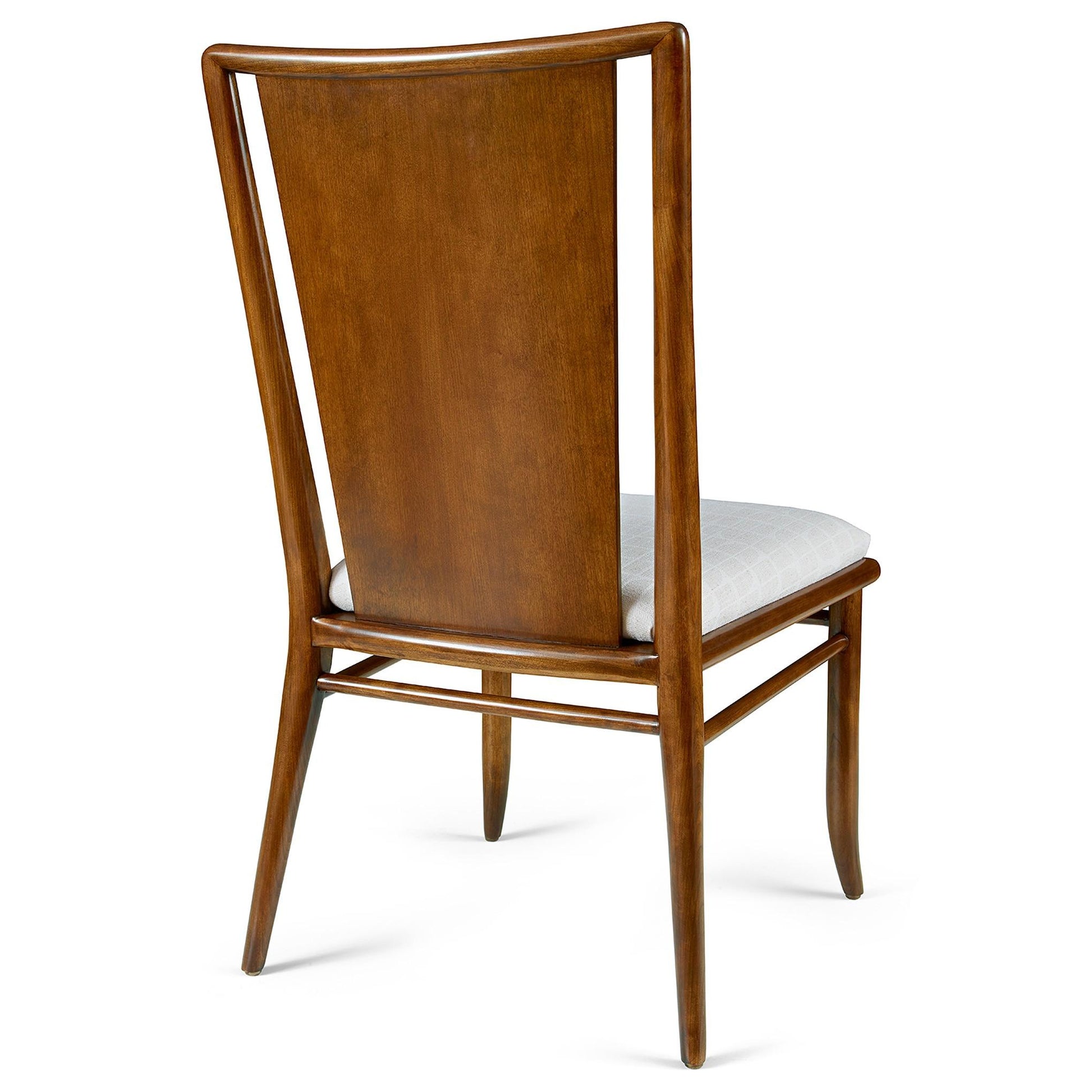 Crafted with relaxed comfort and mid-century inspiration in mind, the Martine Side Chair has slightly curved, rounded legs and an upswept back, where a broad wooden center panel stands apart from the frame. Stretchers on all four sides sit just below the upholstered seat. Available in your choice of fabric or leather.