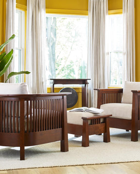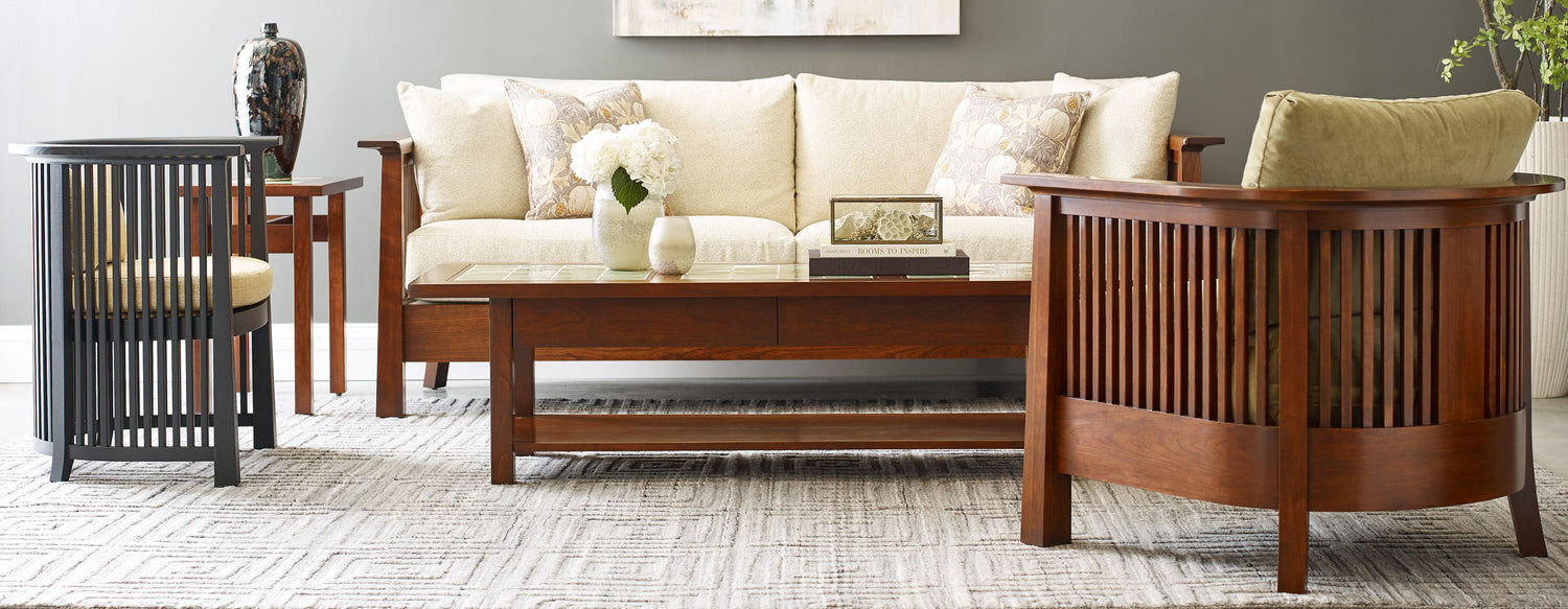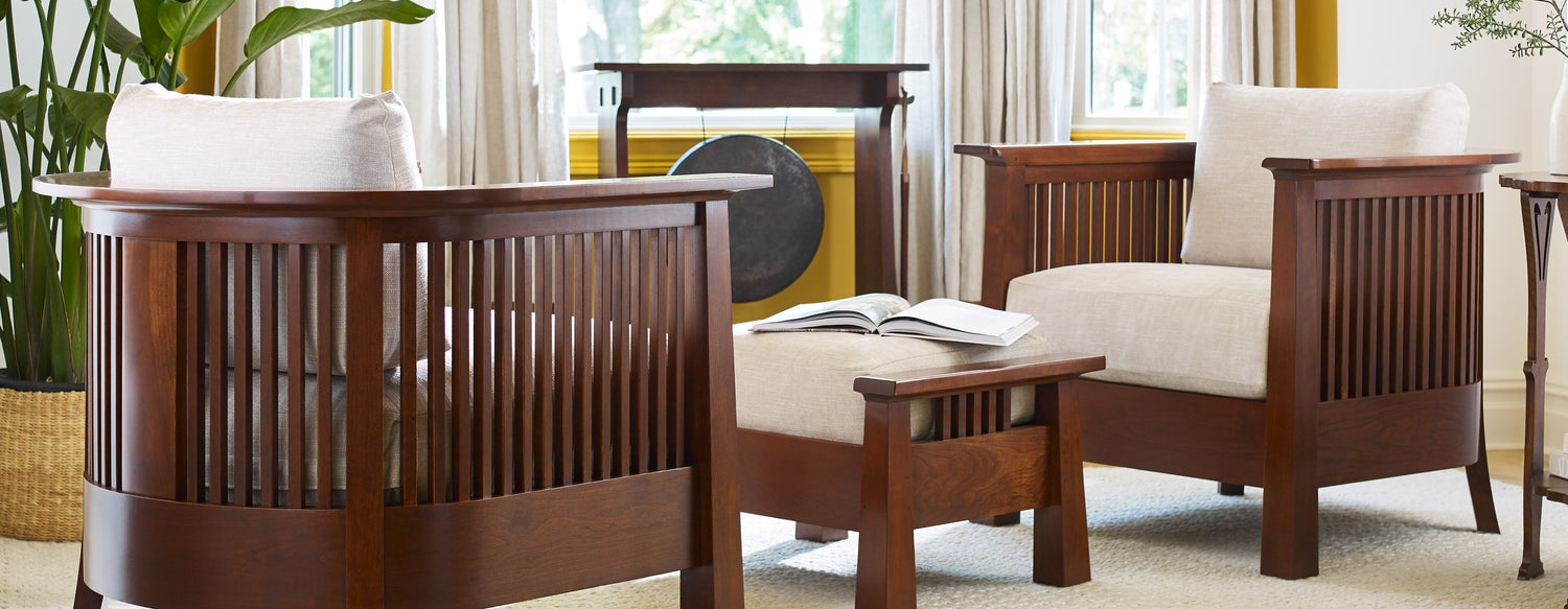 Upholstered pieces can be customized with your choice of any Stickley Fine Upholstery fabric or leather, including sustainable options or options with performance finishes.