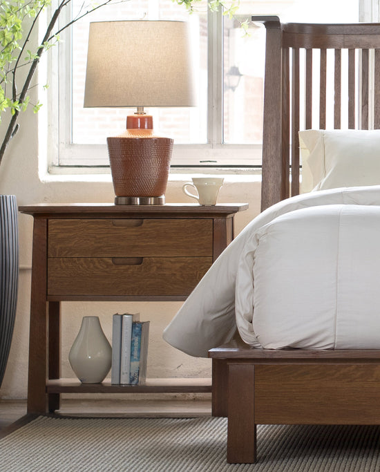 • Lifestyle showing the Park Slope Platform Bed and Open Nightstand