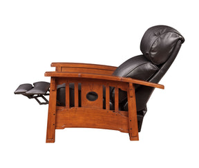 A tsuba, the decorated hand guard on a samurai sword, inspired the cutouts on the sides of this recliner and gave it its name. Incised carving, cloud-lift motifs, and precise African Blackwood joint pins add elegance.