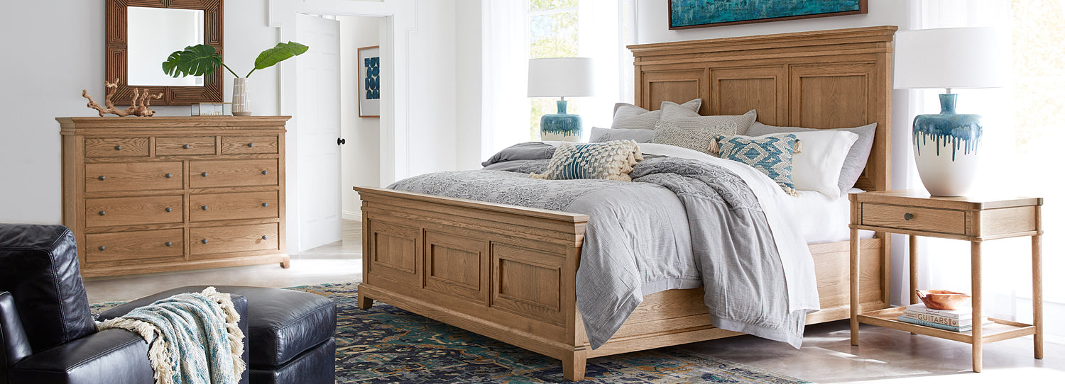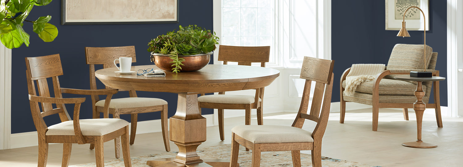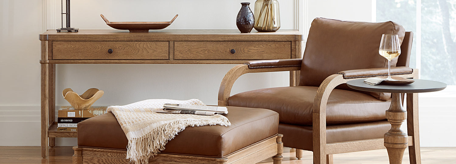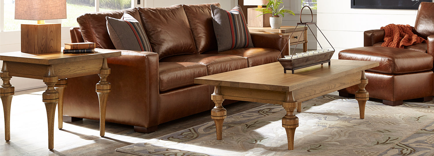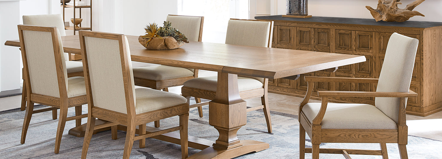 St. Lawrence’s living room groups have unique charms. The Post group has round, tapered legs that extend to the tabletop, while the Turned group echoes the bold, banded shapes of our dining tables. Even more contemporary, the Metal group’s mix of soft, warm-hued metal with solid oak feels fresh yet relaxed.