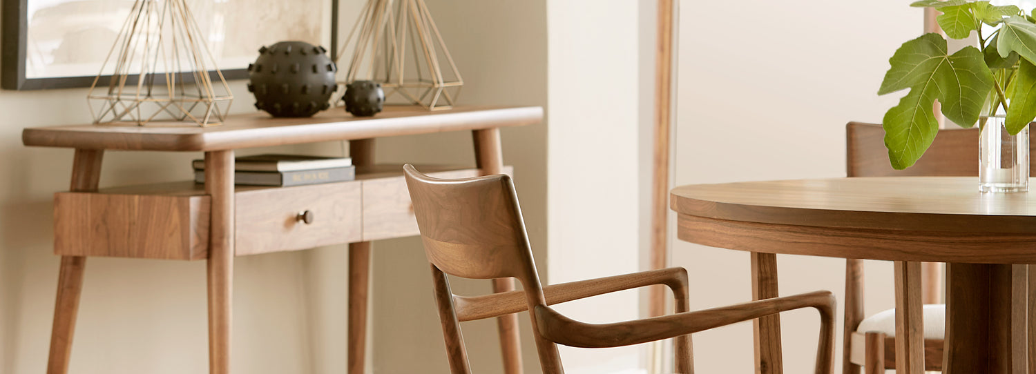 The beauty of solid American black walnut is on display in every burl, swirl, and knot of the Walnut Grove Collection. While mid-century modern in style, each piece is handcrafted using the time-honored Stickley construction features you value.