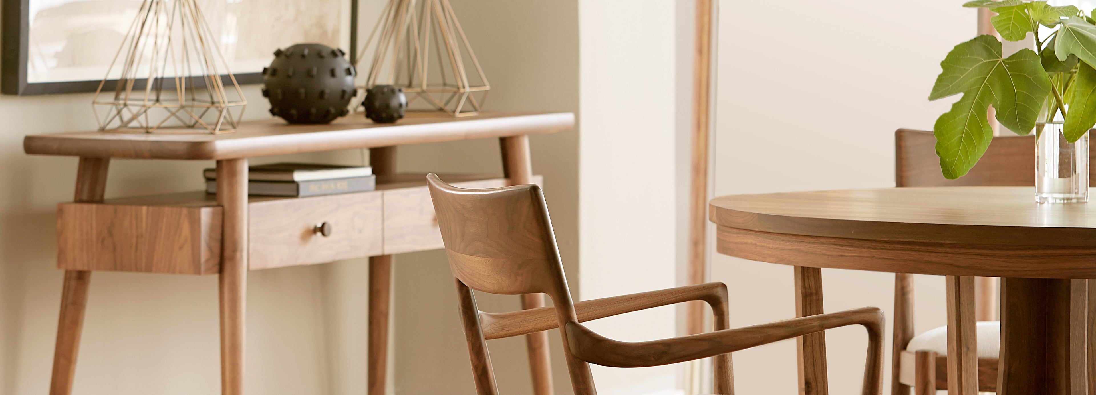 What you see in Walnut Grove is not just beautiful black walnut, but also plenty of air and light. Its curvy, sculptural mid-century modern designs incorporate lots of open space, creating pieces and whole rooms that feel buoyant and fresh.