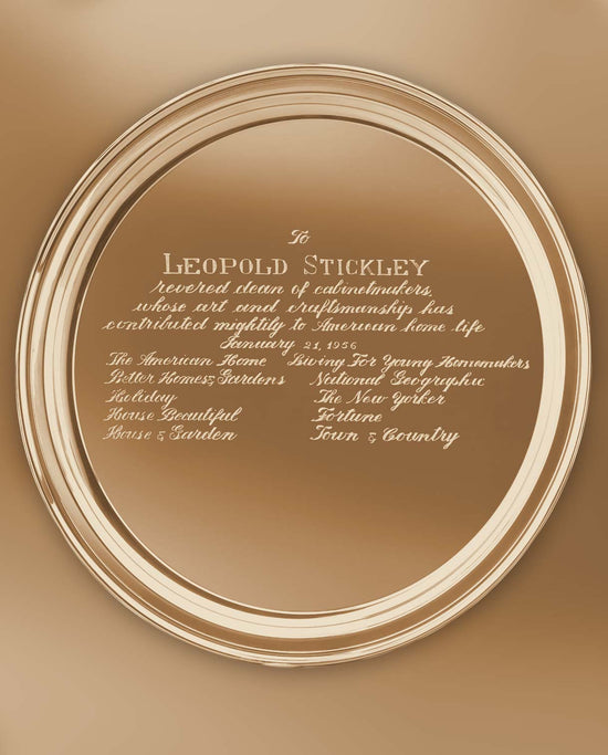 Leopold Stickley is honored as “The Revered Dean of Cabinetmakers whose art and craftsmanship have contributed mightily to American home life” by the editors of House Beautiful, The New Yorker, National Geographic, Holiday, House & Garden, Fortune, The American Home, Living for Young Homemakers, Town & Country, and Better Homes & Gardens.