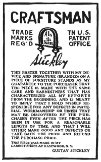 As Gustav Stickley begins to standardize his furniture line, he starts to use paper labels to mark some pieces.