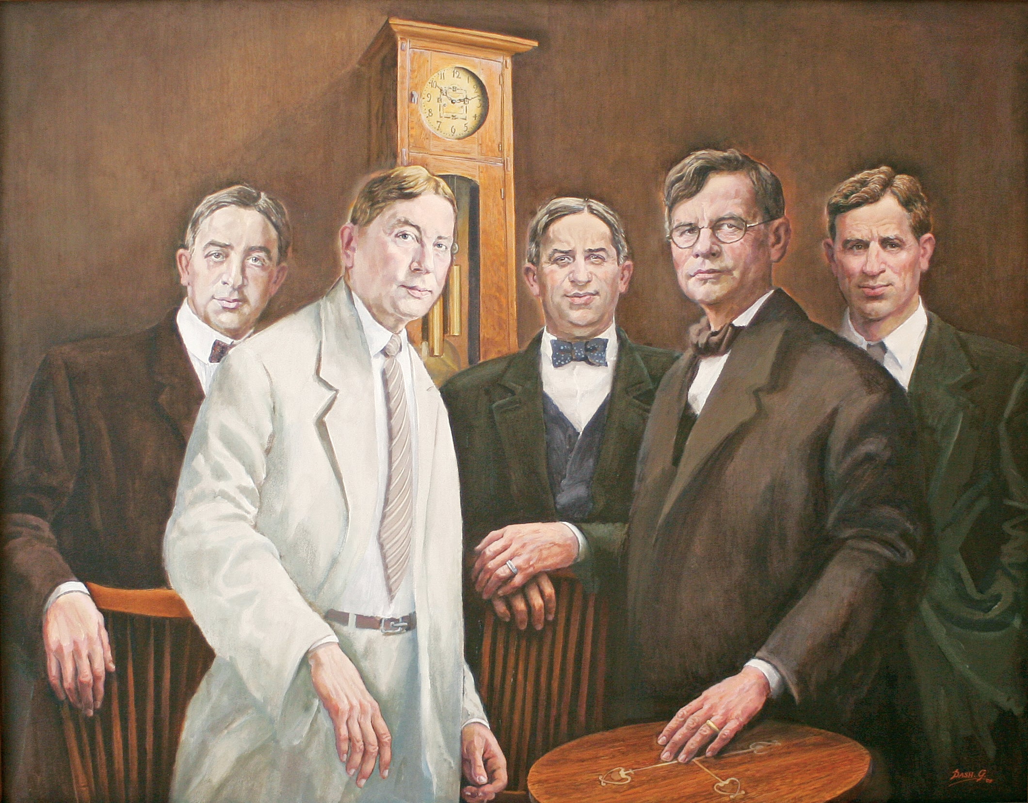 The L. & J.G. Stickley Anniversary pieces from 1950 bear a particular medallion that honors the man who would become “The Revered Dean of Cabinetmakers,” Leopold Stickley.