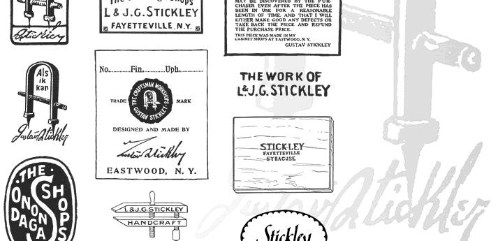 Through the years, our shop mark has taken on different appearances, but its meaning of timeless quality has never changed. The burned-in brands, metal tags, decals, and paper labels used to mark Stickley's furniture are certificates of our solemn promise that the furniture has been crafted to the best of our ability.