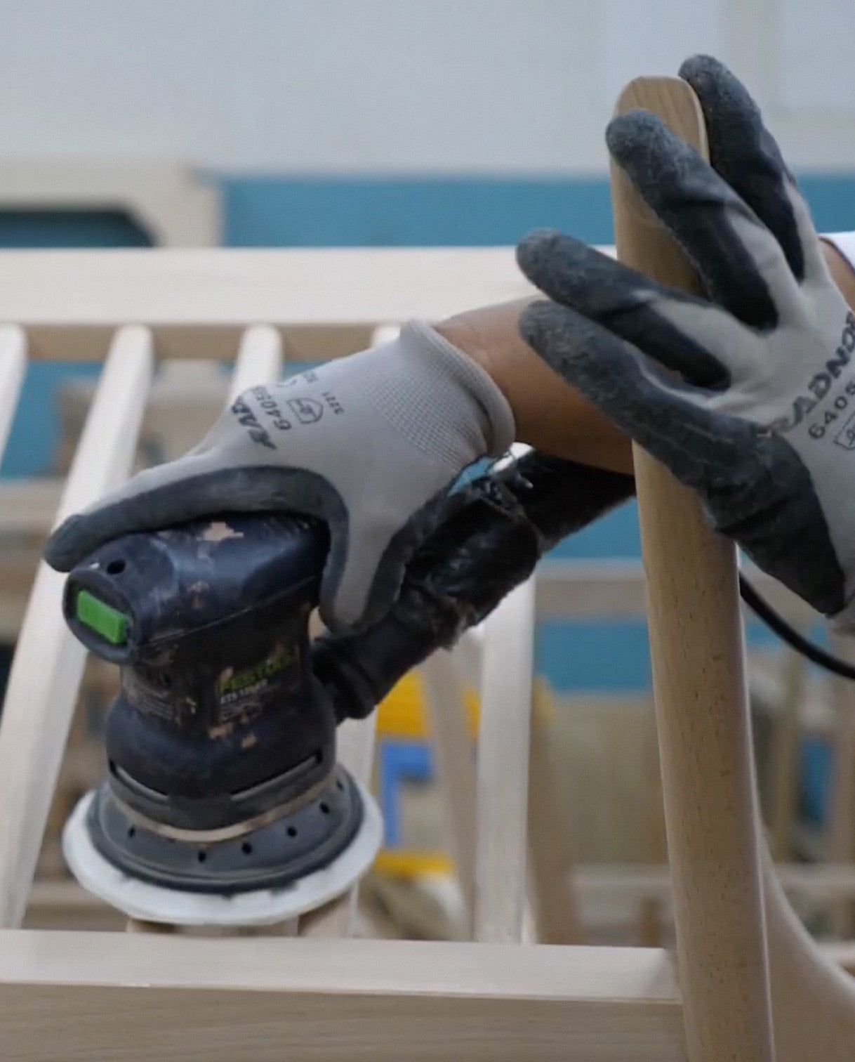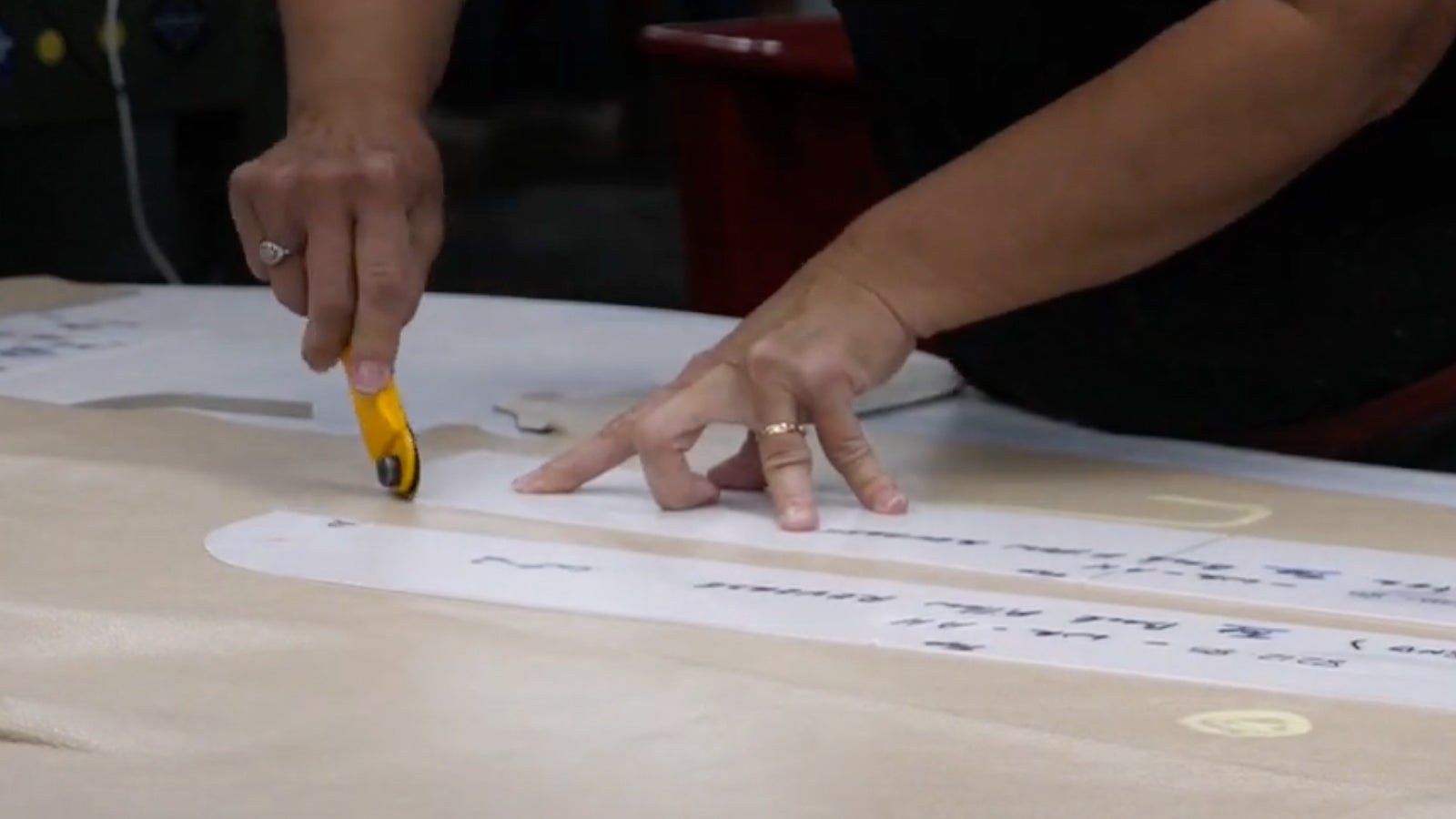 Fabrics are individually cut to ensure careful center- or flow-matching of each pattern. A sofa may have as many as 80 individual pieces of fabric that need to be cut to pattern with exceptional accuracy.