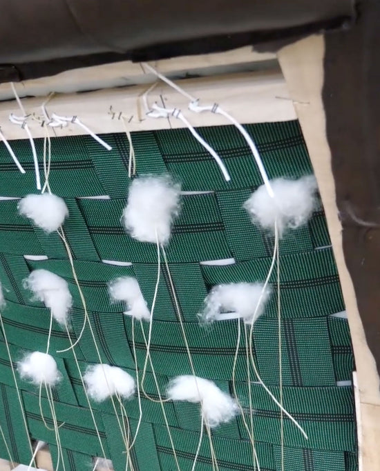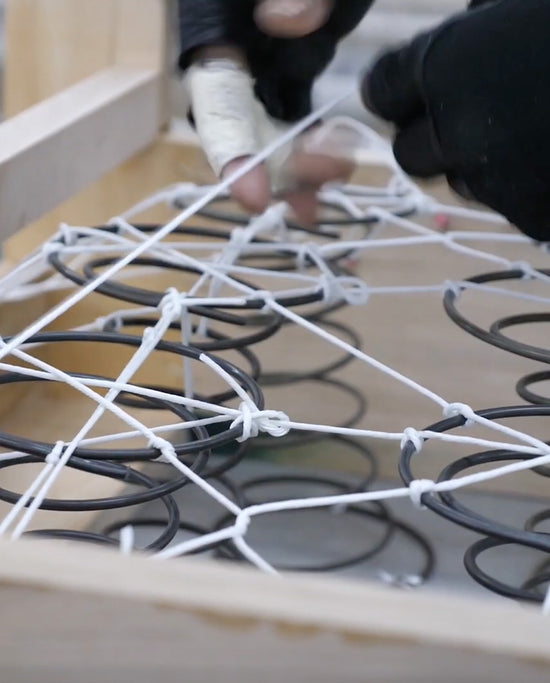 In this classic high-end upholstery method, hourglass-shaped steel coils are tied together in an 8-way web that ensures uniform movement and support, for years of top performance.