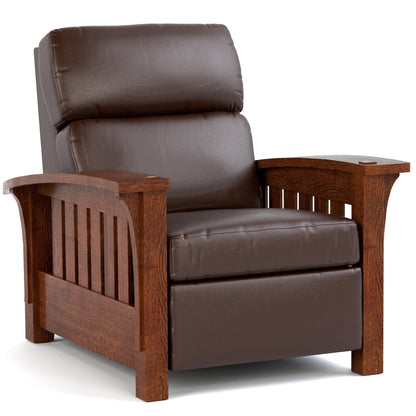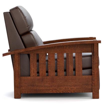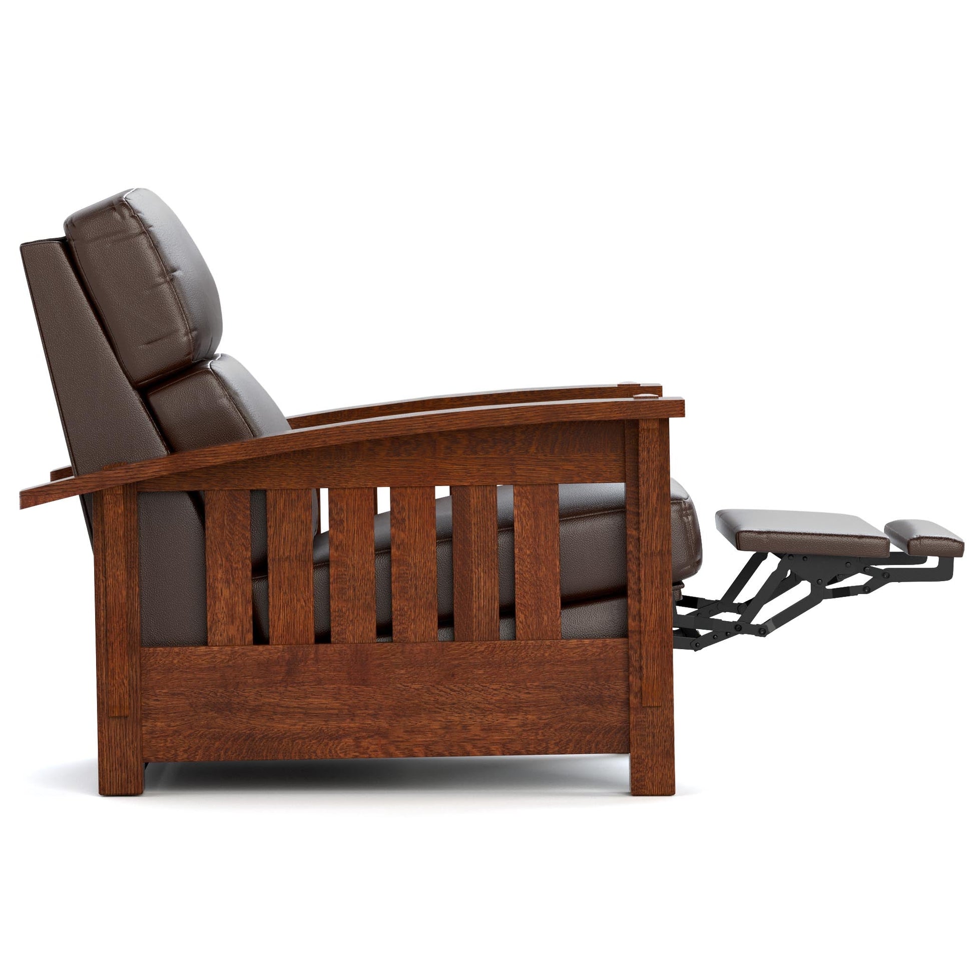 Our Morris Power Wall Recliners are based on Gustav Stickley designs that were the forerunners of the modern recliner, and while they look like heirlooms at a glance, their Arts and Crafts style disguises state-of-the-art motion and wall-hugging technology. This version features long, graceful bowed arms with slatted sides, plus a bustle back that adds contemporary comfort and make these best-in-class recliners. Available in four top-grain Colman leathers for Express Ship.