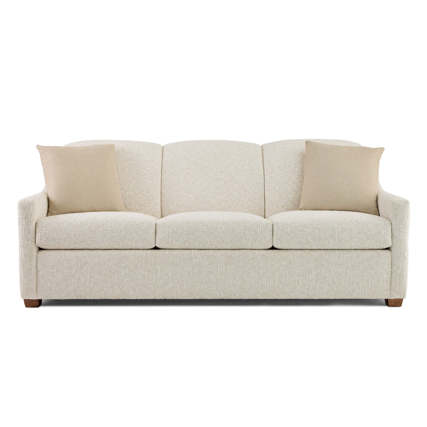 Tailored design details take Avalon from simple to unexpectedly chic. A cushion-like tight upholstered back curls over the top and nests between subtle wings formed by refined, upswept track arms. Completing that sweep, the back of the sofa curves in a smooth arc from the top to the base, making it a beautiful piece to float in a room. Low block legs and pair of 20-inch throw pillows compete the picture, and inside, our new proprietary DuraCoil suspension system strengthens the frame and supports the seat cushions evenly for long-lasting comfort.