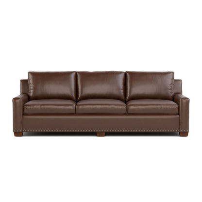 The Durant group places an emphasis on lush, roomy comfort. Its family-sized 101-inch Sofa is the deepest we manufacture at 42 inches, and it features three wide seats with plush cushions and well-padded arms, plus throw pillows on the fabric version. Such generous proportions make it perfect for watching a movie, reading to the kids, or taking a luxurious nap. Durant's finishing details are equally impressive: the leather version of the sofa includes a luxurious pocket-fold detail on each arm, and the bottom edge is trimmed with a neat row of optional large nail heads.
