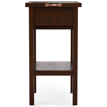 In honor of the 125th anniversary of Stickley’s founding, the Floral Tile Collection has been thoughtfully designed to lend beautiful Mission personality and function throughout your home. The Tray Table features a removable tray top and a lower fixed shelf; the space beneath the tray offers a convenient finished interior space as well as access to its interchangeable Motawi Freesia tile, held in place with swiveling clips. Each piece in the collection is crafted in the USA of solid quartersawn white oak with mortise-and-tenon joinery.