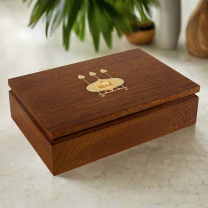 The Harvey Ellis Accessory Box elevates the storage box into a truly beautiful, functional collector's piece. Constructed of quartersawn oak with durable Mission joinery, it features a classic Harvey Ellis Viking-ship inlay, as well as neat chamfers all around that add a touch of refinement. Inside, nine compartments are created by a removable, single-piece wooden divider. Use this striking box in the bedroom to protect fashion accessories (jewelry, watches, rolled neckties) or in other rooms to store tea bags or sort keepsakes, sewing notions, and collections. You can also remove the divider to accommodate larger items. The Accessory Box comes in our popular Onondaga finish and makes a unique and thoughtful gift.