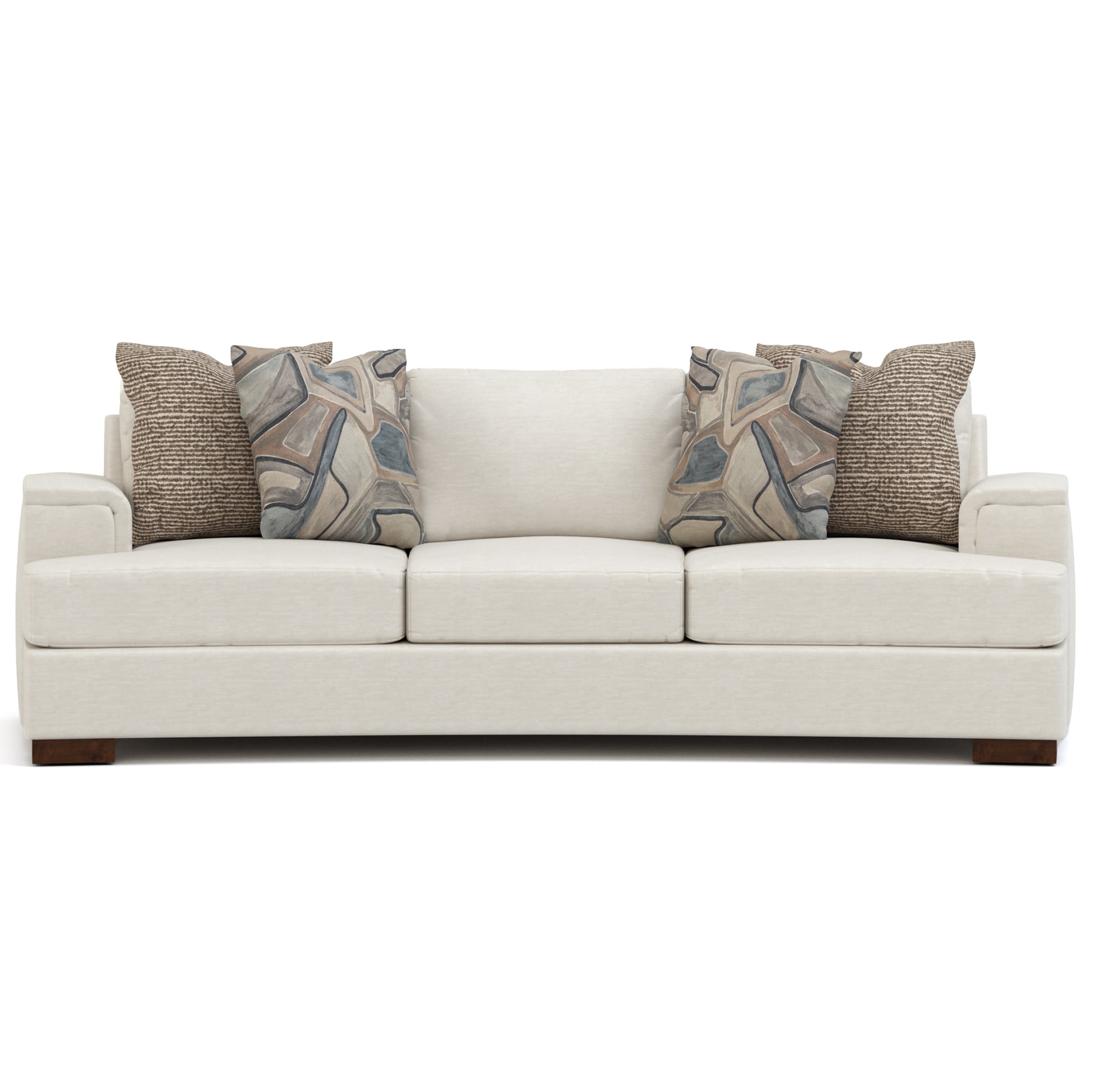 Chic, curved seating feels right at home in our eclectic Portfolio120 Collection. The subtle arc of the Hayward Curved Sofa ends in broad arms that curl inward. Extra depth, plush loose cushions, and four 22-inch square throw pillows create a comfortable nest, and low-profile block feet help keep the look clean and modern. You can purchase the sofa as shown or customize it in any fine Stickley fabric and any maple finish.