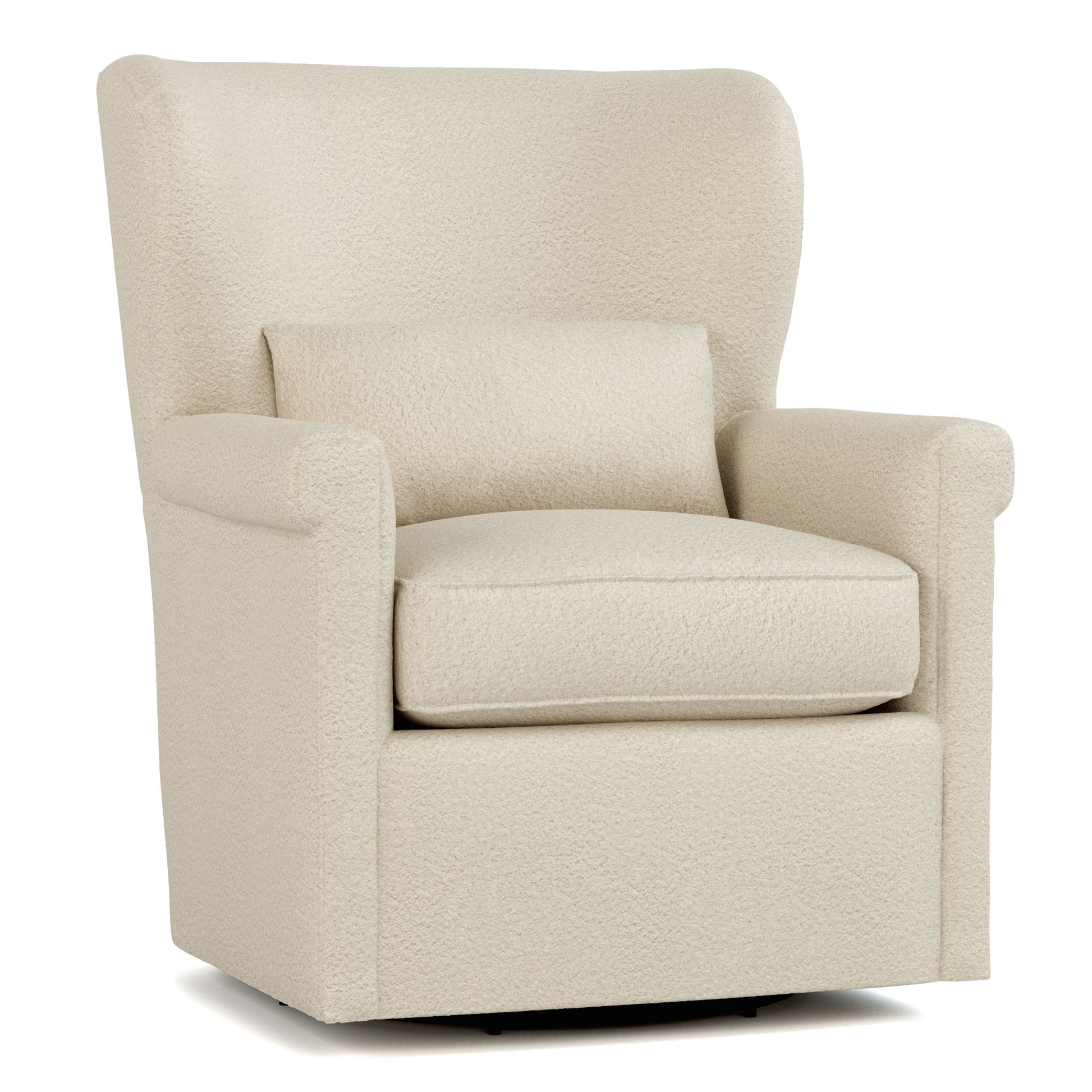 With clean, modern lines, the Hudson Valley Swivel Wing Chair makes a classic style fresh. It's long and lithe, rising 40 inches from the floor to the top of its tight, gently curved wing back. Small key arms contain a plump, loose seat cushion, and the frame rests on a smoothly rotating swivel base. While tailored in appearance, the chair is remarkably roomy and comfortable.