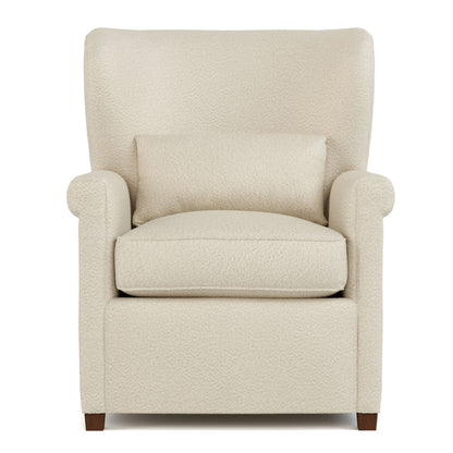 With clean, modern lines, the Hudson Valley Wing Chair makes a classic style fresh. It's long and lithe, rising 40 inches from the floor to the top of its tight, gently curved wing back. Small key arms contain a plump, loose seat cushion, and the frame rests on low maple legs. While tailored in appearance, the chair is remarkably roomy and comfortable.