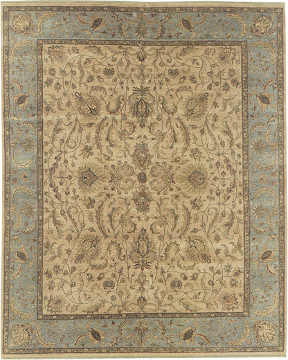 Mahal's traditional Persian design traces its roots to the period from 1526 to 1748 when Mughal emperors ruled India, an era marked by a renaissance in Indian art and literature. This pattern features intertwining leaves and tendrils against a cream field and is hand-knotted in India by master weavers using hand-spun, high-twist Ghazni wool.
