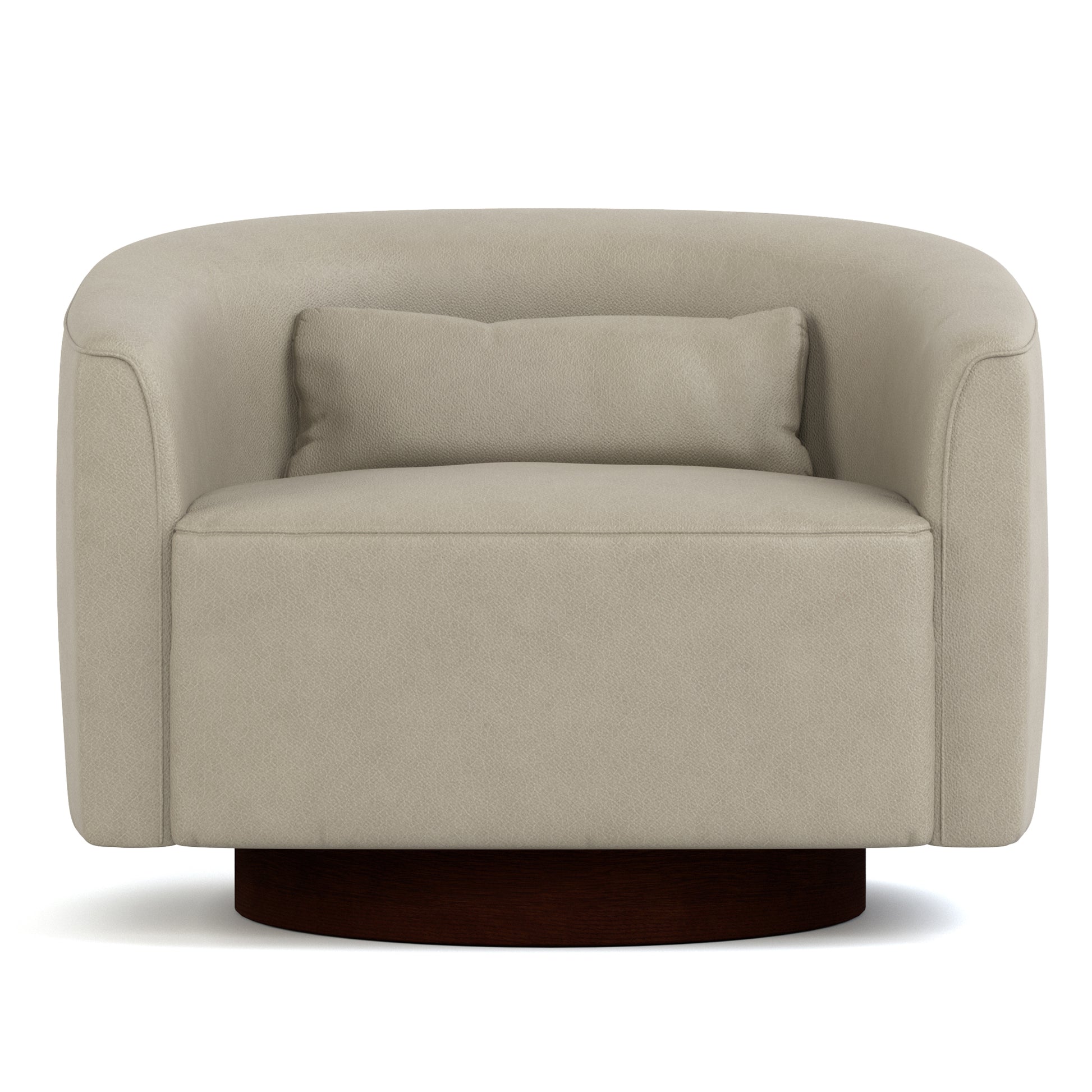 With its enveloping flared arms, tight seat with kidney pillow, and finished pedestal of solid oak, the Oleander Swivel Chair pairs beautifully with a Hayward Curved Sofa or Sectional. You can purchase the chair as shown or customize it in any fine Stickley fabric or leather and any maple finish.