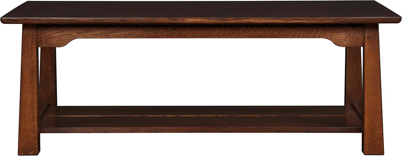 An iconic cloud-lift detail on the Park Slope cocktail table apron creates a quiet lightness of form, as does the split in the shelf underneath. Its reverse-tapered legs are an updated nod to classic Mission design, and the top edge is slightly softened to create a graceful profile. Available in solid quartersawn oak or cherry.