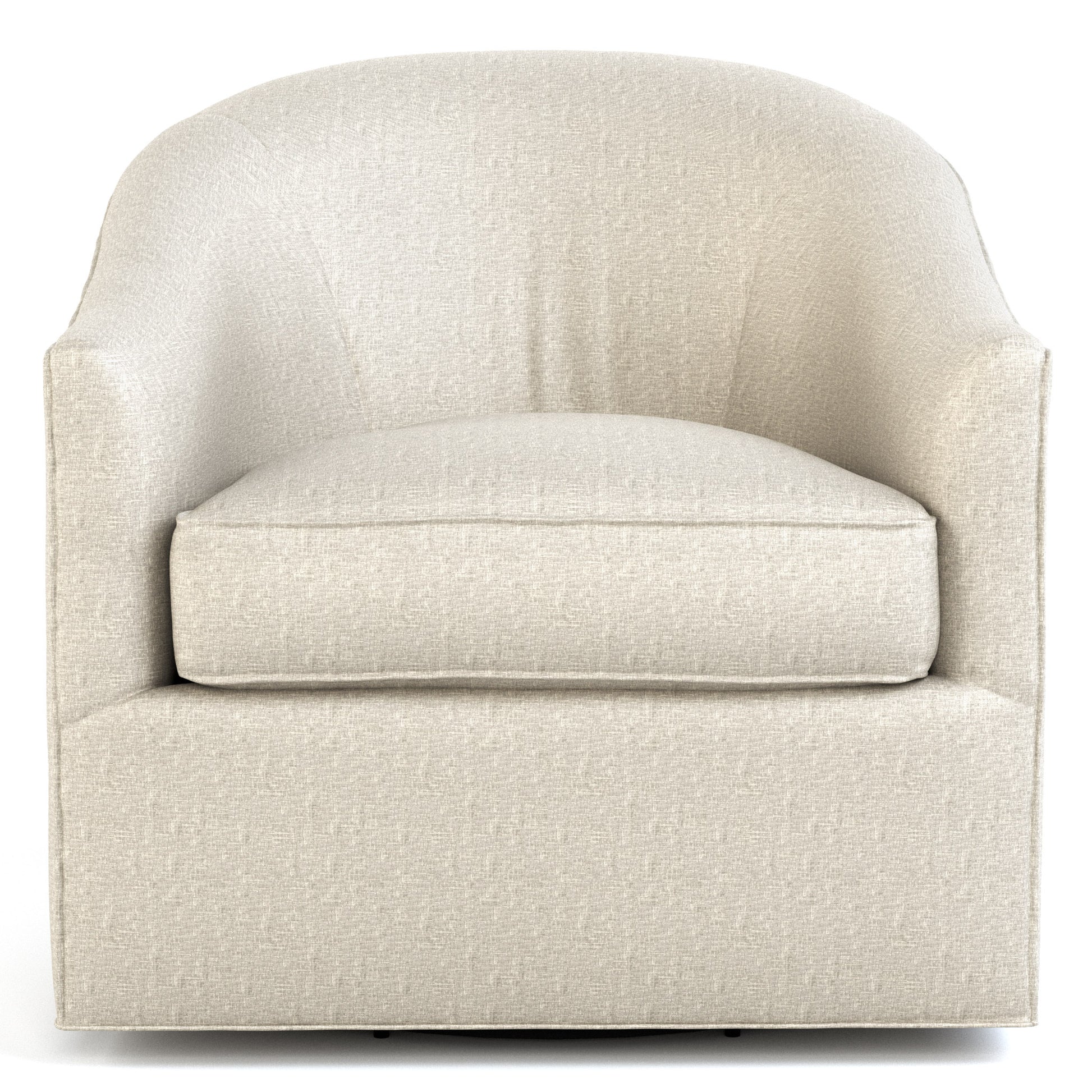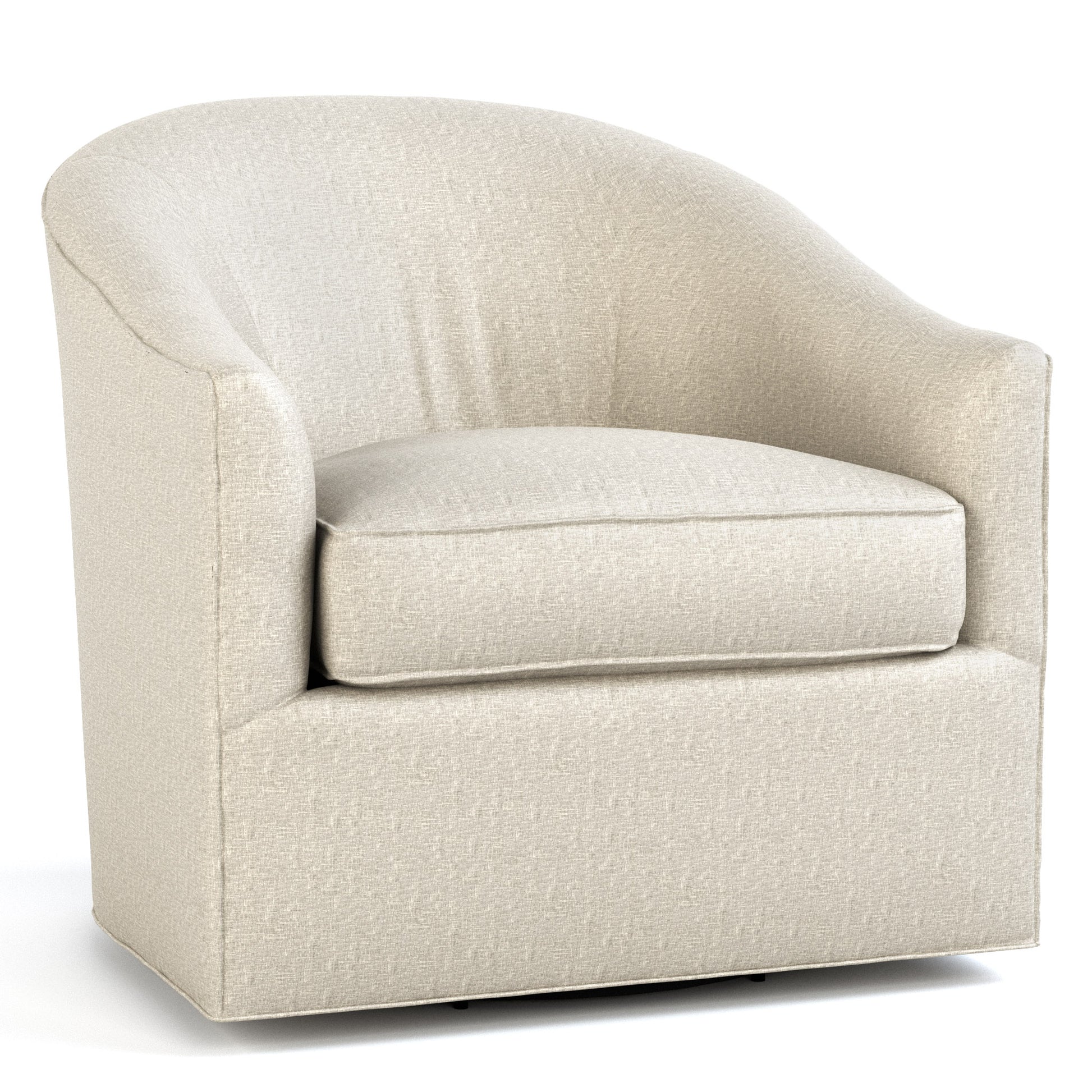 Relax in the comfortable embrace of the Pearl Swivel Chair. With a curved tight back, weltless tailoring, and chic low profile, its look says contemporary style. Yet a plump loose seat cushion and gently angled back offer ultimate comfort. Placed alongside our Mission Swivel Chat Table, a set of Pearl Swivel Chairs is designed to inspire ease and conversation.