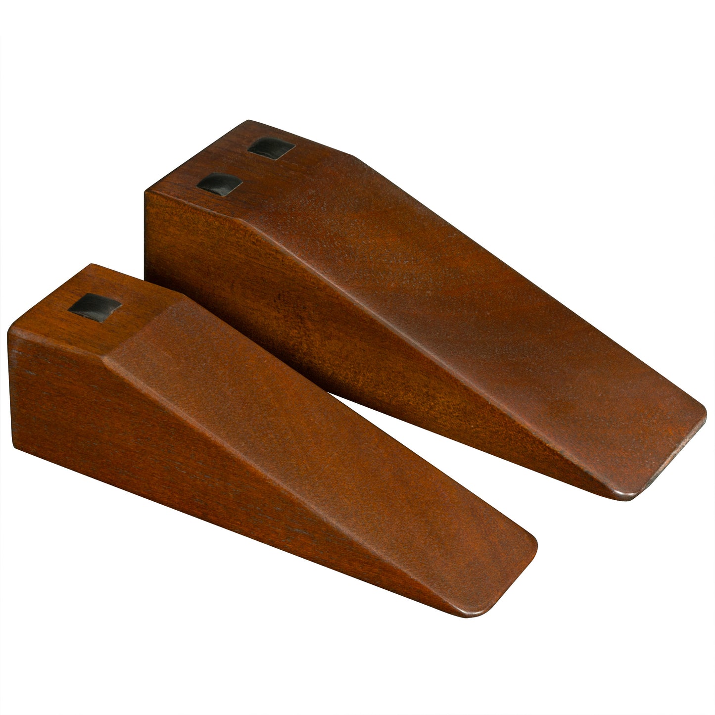 Here is a hardwood doorstop with a look that isn't out of place in a beautiful Stickley interior! Shaped from solid sapelli wood, our Wedge Doorstops have a clean shape with smoothed edges and are finished in a warm chestnut brown, with ebonized African hardwood pegs as a subtle ornament. Place these tasteful stops wherever they're needed throughout your home.