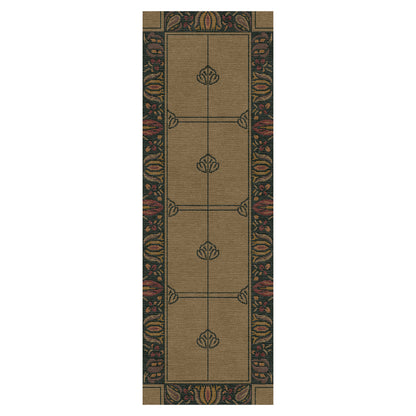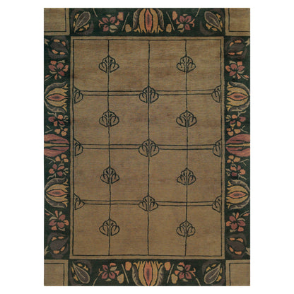 The work of Scotland's Charles Rennie Mackintosh and his wife Margaret Macdonald contribute inspiration to our elegant Windyhill rug. Its pattern recalls Mackintosh's signature design aesthetic, while Macdonald's panel titled \"Heart of the Rose\", designed for her husband's Hill House project, lends its color palette. A wonderful complement to many Stickley collections, the rug is hand-knotted by Nepalese weavers using wool from Himalayan Highland sheep.